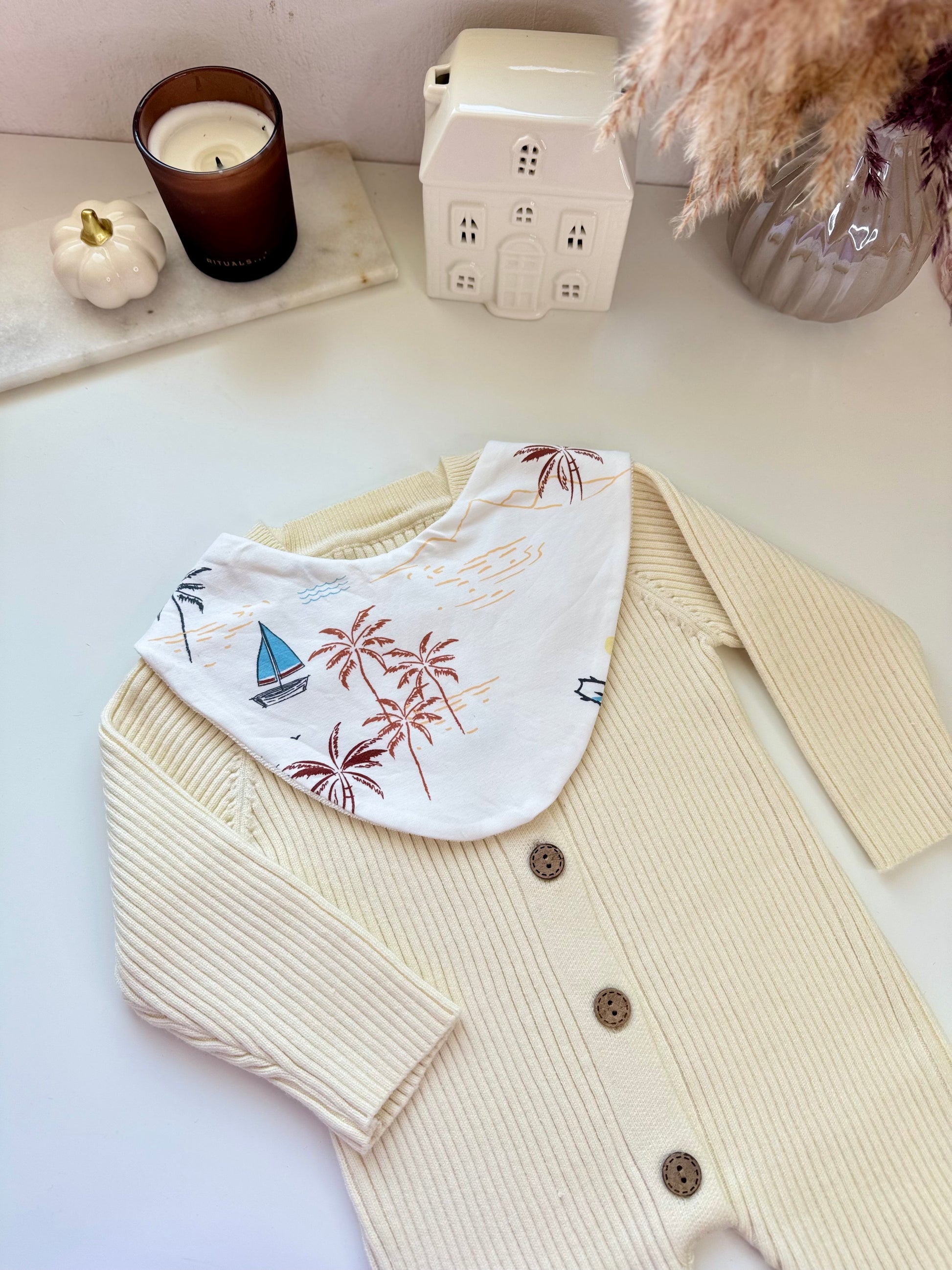 De voorkant is gemaakt van echte katoenen stof – tijdloos, zacht en comfortabel. De achterkant bestaat uit badstof, dat extra goed absorbeert en je baby droog en schoon houdt.