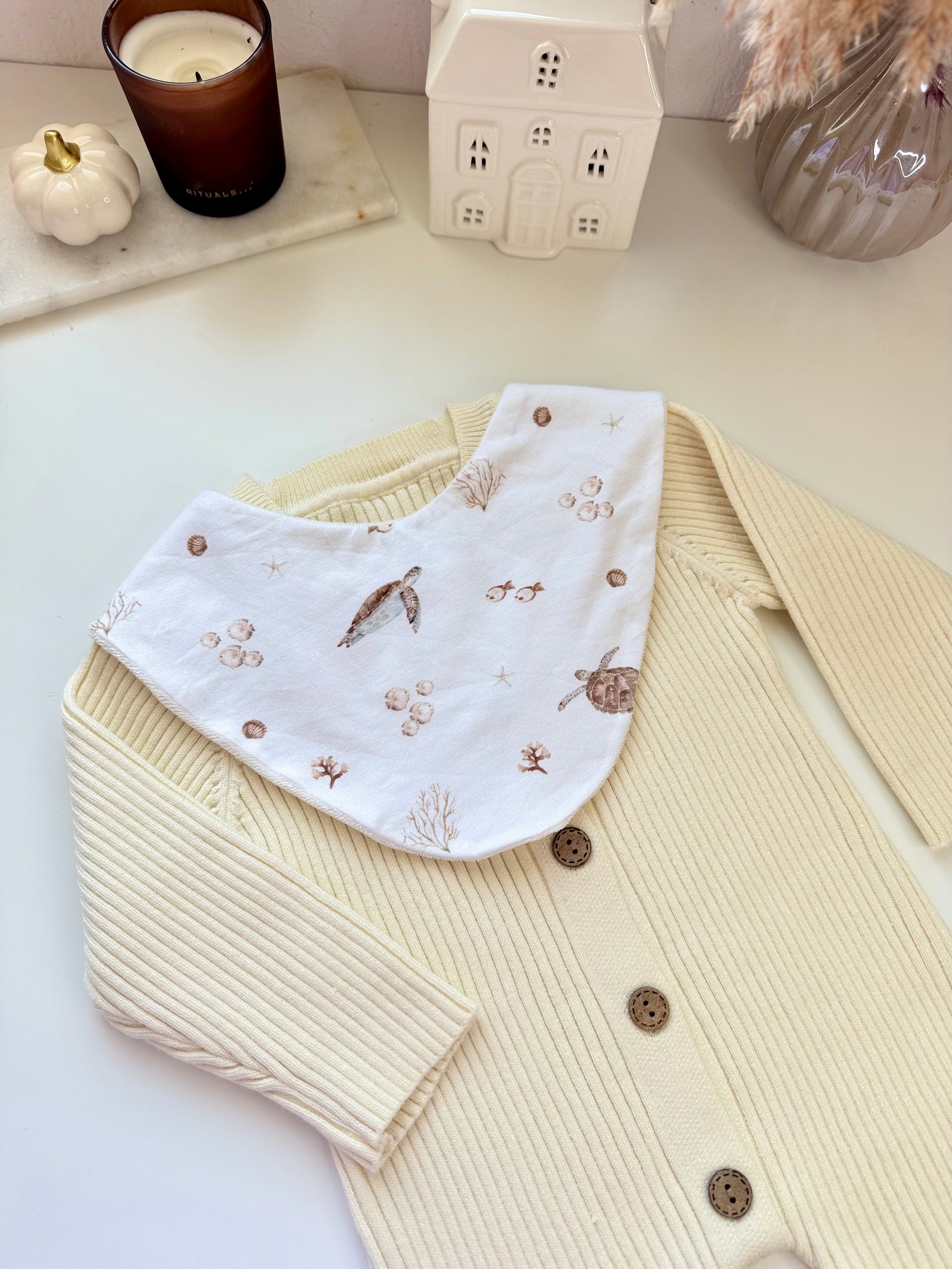 De voorkant is gemaakt van echte katoenen stof – tijdloos, zacht en comfortabel. De achterkant bestaat uit badstof, dat extra goed absorbeert en je baby droog en schoon houdt.
