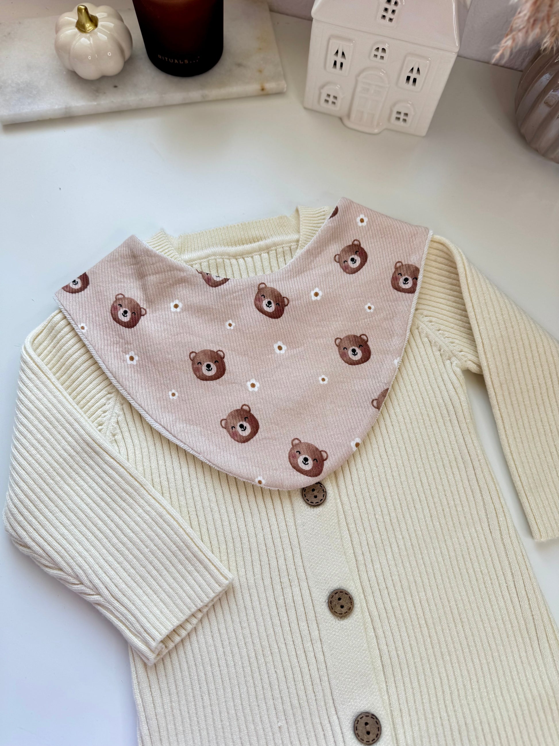 De voorkant is gemaakt van echte katoenen stof – tijdloos, zacht en comfortabel. De achterkant bestaat uit badstof, dat extra goed absorbeert en je baby droog en schoon houdt.